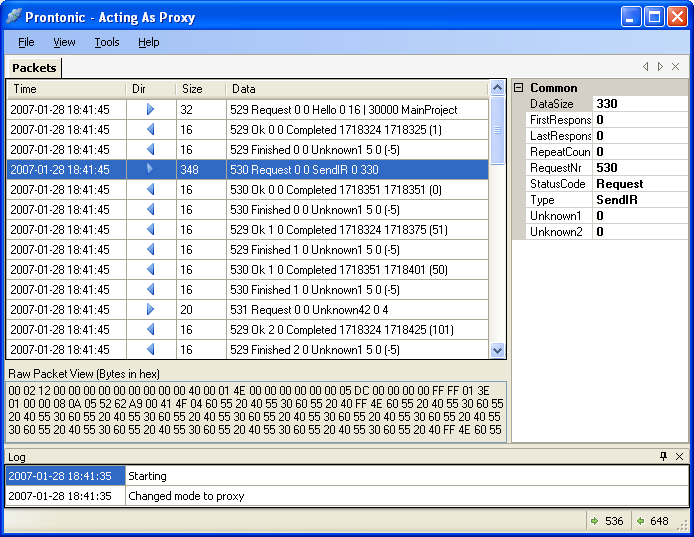 - Start up Prontonic and press the button on your remote. You should now see a list of packets including one that contains the string you wrote in the ASCII section.